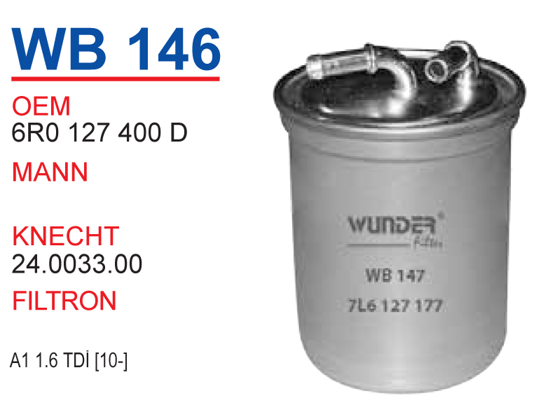 WB 146 AUDI A1 1.6 TDI (10-) 6R0 127 400 D Yakıt/Mazot Filtresi
