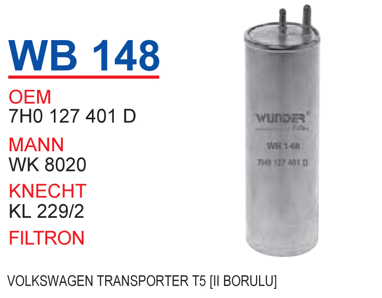 WB 148 VOLKSWAGEN TRANSPORTER T5 (İKİ BORULU ) 7HO 127401 D Yakıt/Mazot Filtresi