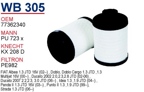 WB 305 OPEL CORSA C - COMBO C 1.3 CDTI 813 569 Yakıt/Mazot Filtresi