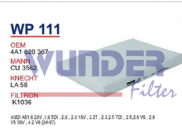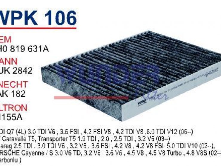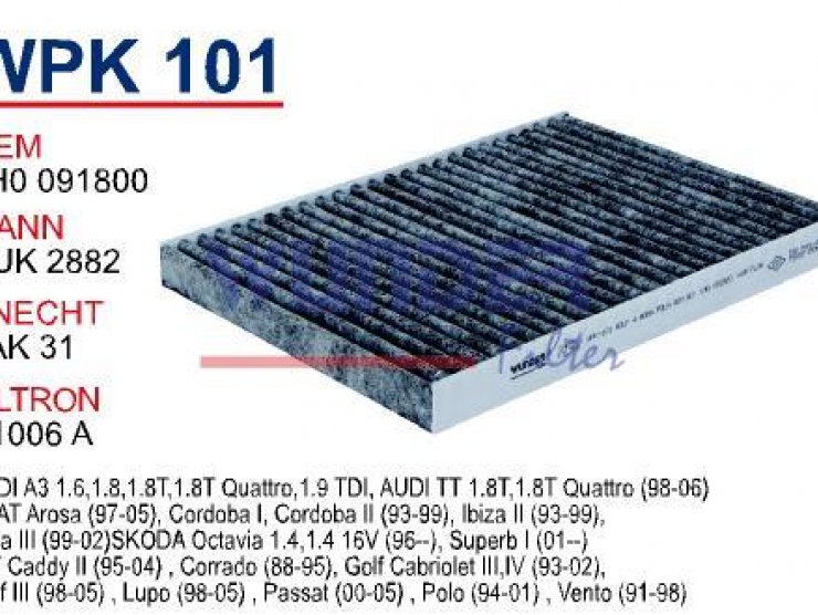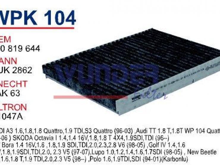 WP 101 VOLKSWAGEN GOLF 4 - BORA 1.4-1.6-1.8 POLO III 1H0 819 644 Polen Filtresi
