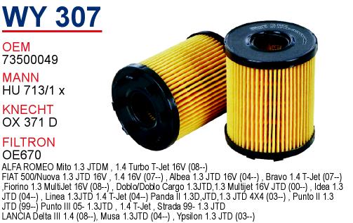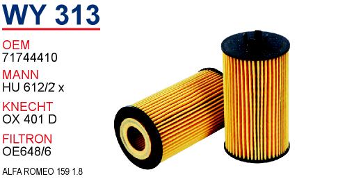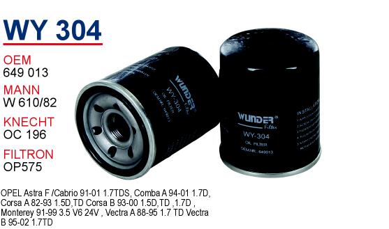 WY 301 OPEL VECTRA 1.8 650308 Yağ Filtresi