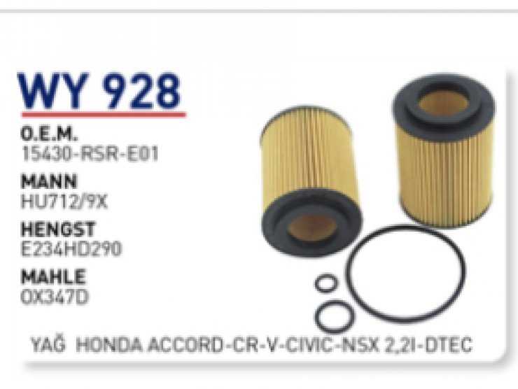WY928 15430-RSR-E01 HONDA ACCORD CRV IV -CIVIC IX-ACCORD VIII YAĞ FİLTRESİ