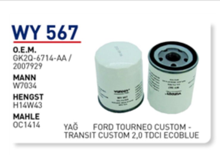 WY 567 GK2Q-6714-AA / 2007929 FORD TORNEO CUSTOM- TRANSİT CUSTOM YAĞ FİLTRESİ