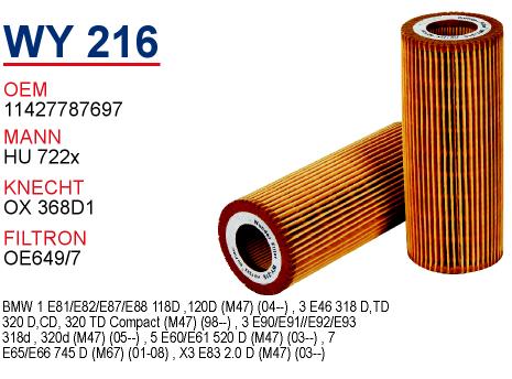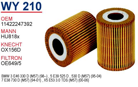 WY 209 BMW E46 320 d - E39 520 d M47 11422247018 Yağ Filtresi